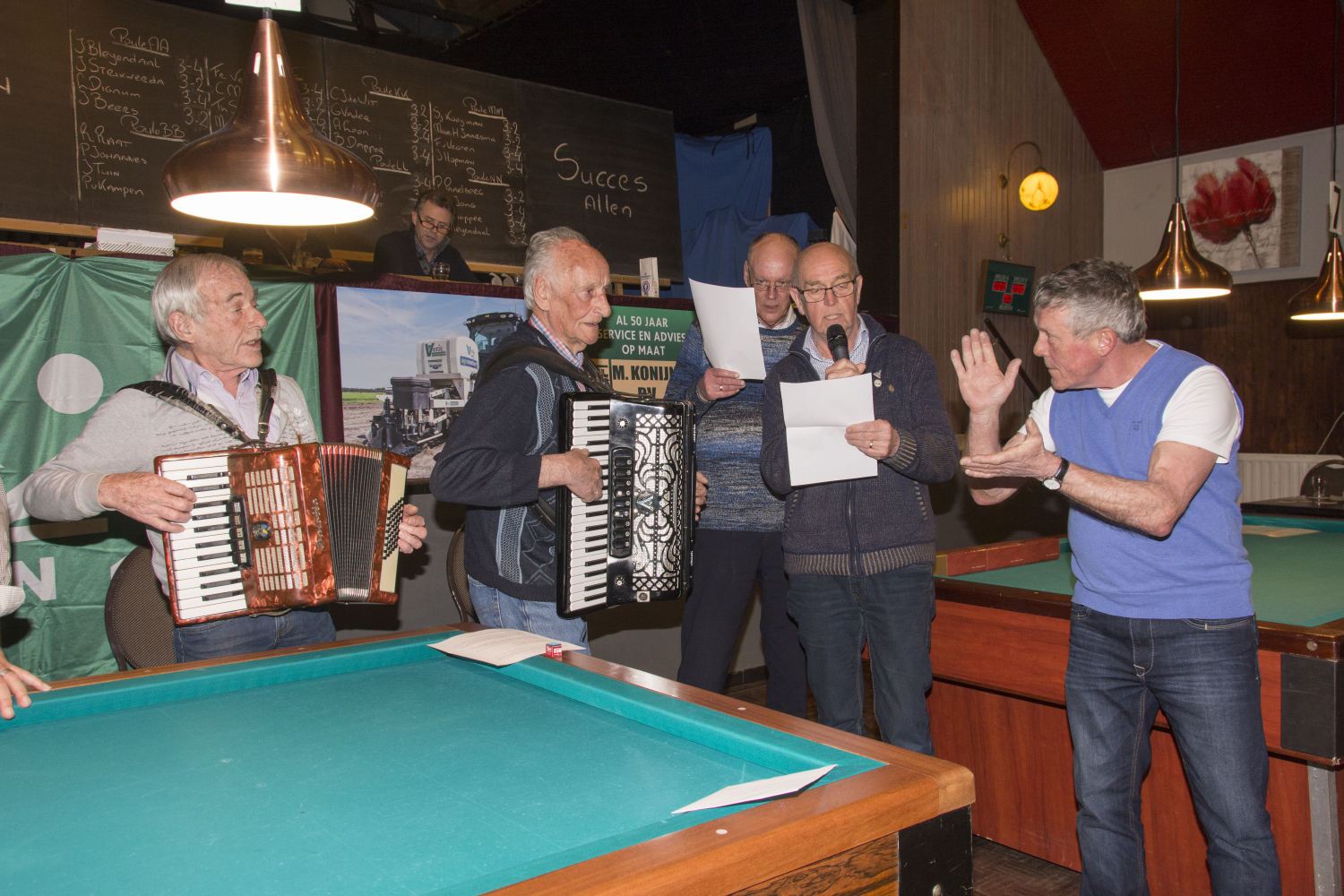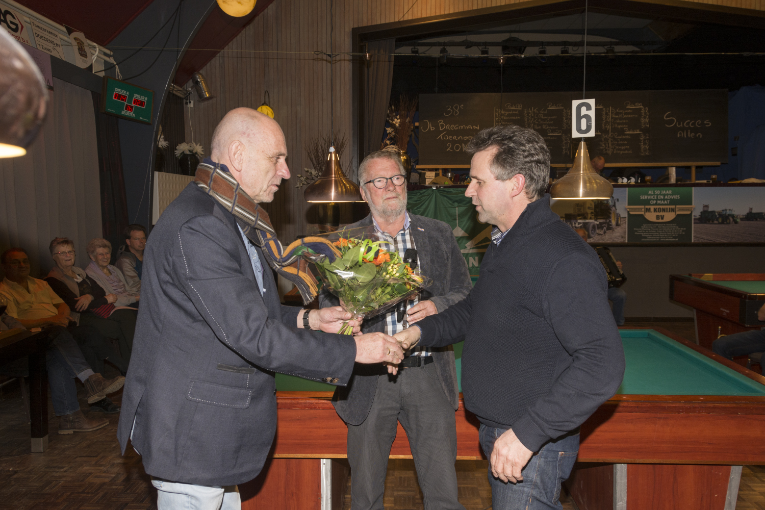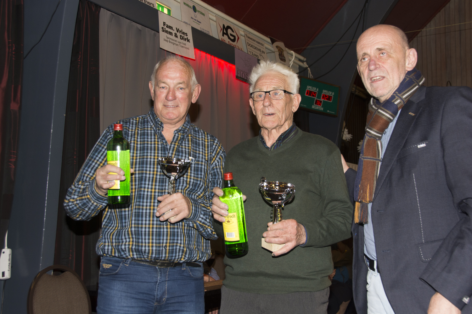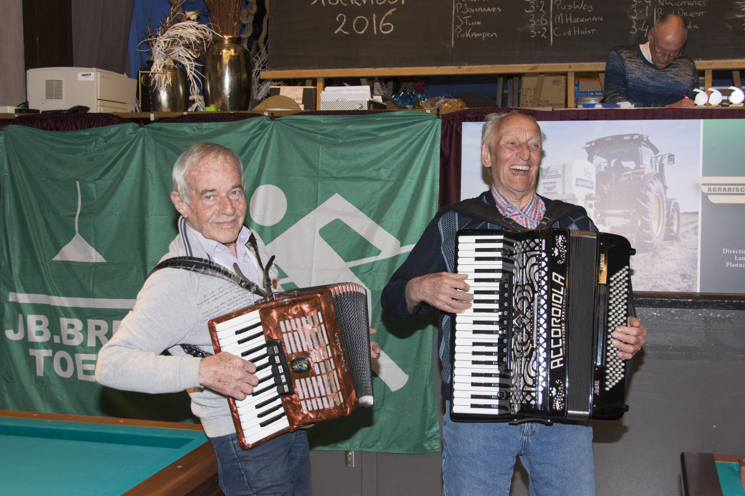 Schager wethouder Ben Blonk was er, conform zijn belofte, weer bij om de prijzen uit te reiken. Onder muzikale begeleiding door het trio Jan Raatgers (trompet), Jan Brugman en Dick Bregman (beiden accordeon) genoot Blonk zichtbaar van de feestelijke sfeer rond de huldiging van de kampioenen. Moeiteloos nam hij de regie over van voorzitter Piet Zomerdijk en beloofde er volgend jaar zeker weer bij te zijn. Via een bloemetje voor arbiter Henk Kleef werden alle vrijwilligers bedankt voor hun inzet. En het laatste woord was voor Mees Dapper die de organisatie als ook en vooral de hoofdsponsor bedankte voor het welslagen van dit 38ste toernooi.