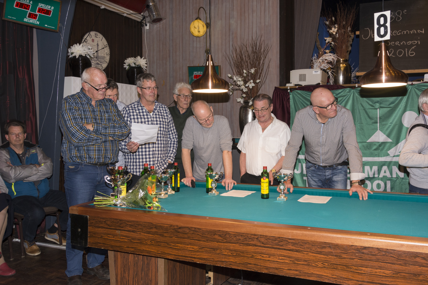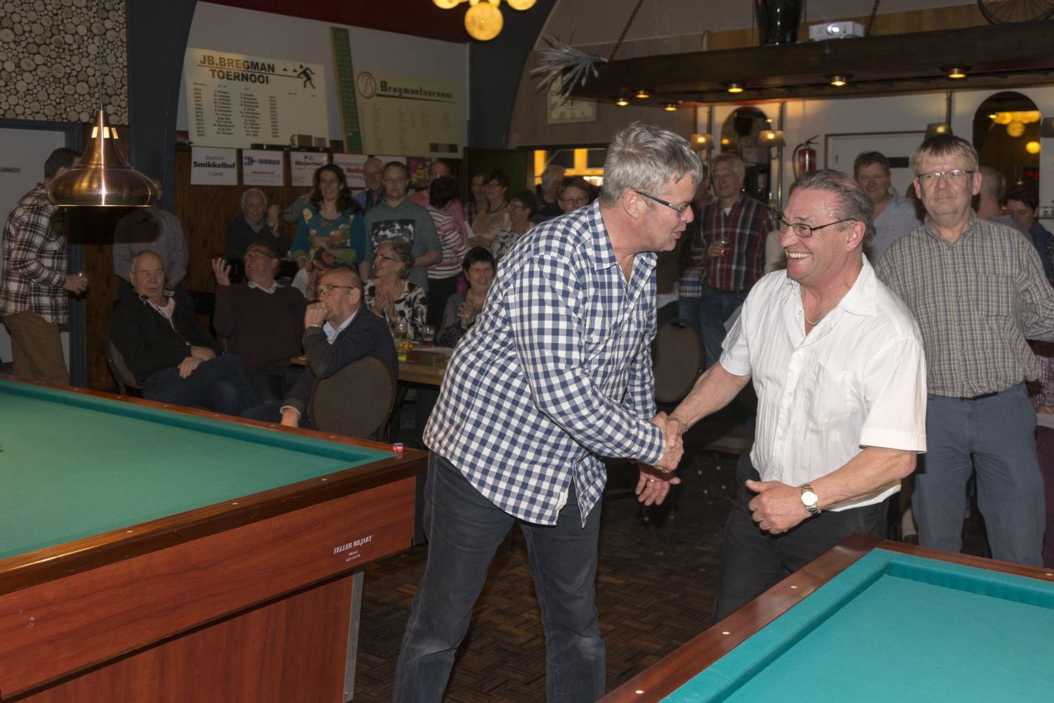 Van 10 tot en met 13 maart jongstleden werd in biljartpaleis De Jonge Prins in ’t Zand gestreden om de titel Zijper biljartkampioen 2016, oftewel de 38ste editie van het Jb. Bregmantoernooi. De opening werd verricht door de Schager wethouder Jelle Beemsterboer. Hij prees de inzet van de vele vrijwilligers, de sponsoring door meer dan 60 Zijper ondernemers en benadrukte het reünie-achtig karakter van het toernooi waarmee het een uniek evenement is in de voormalige gemeente Zijpe. En, ook bijna traditiegetrouw, werd de openingsstoot vervolgens ruimschoots door hem gemist.