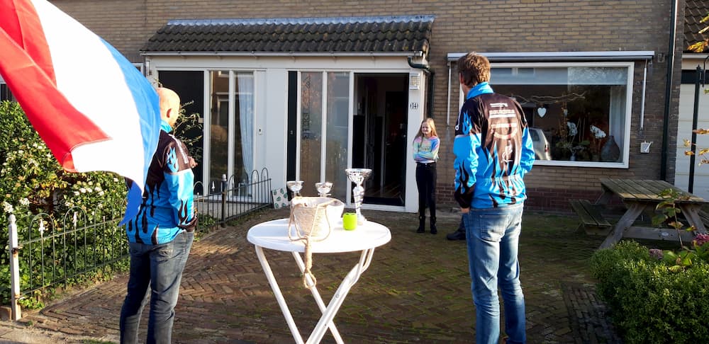 Het bestuur had een mooi plan dat vorige week zondag 8 november tot uiting werd gebracht. Een statafel voor het huis met daarop de beker en met vlag in de hand om het mooi feestelijk te maken, gingen ze de hele Noordkop door. Er was een mooie route uitgestippelt.