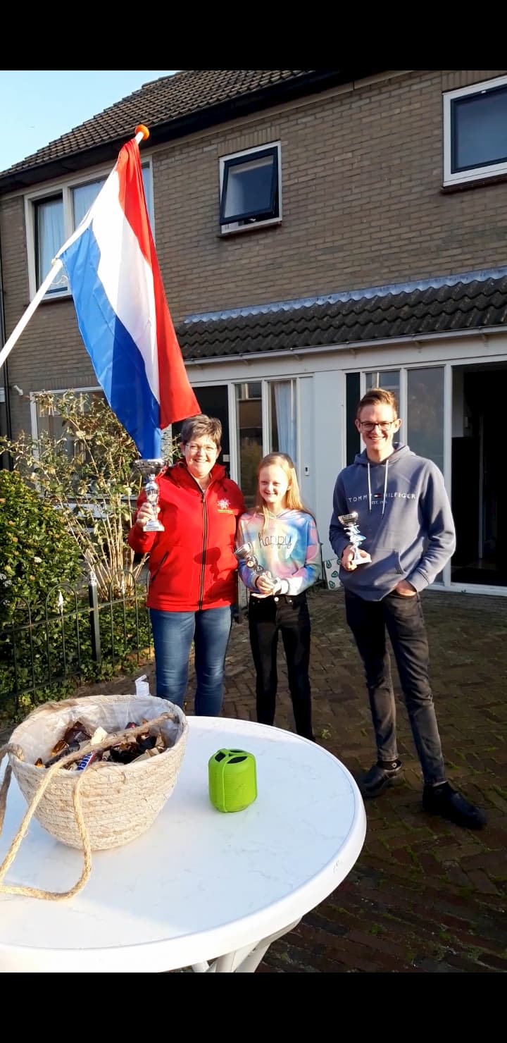 Met het mooie weer was het geen straf dit te doen door Joost en Ronald. De prijzen werden uitgereikt onder aanvoering van het Wilhelmus. Echt een superleuke actie en alle leden waren zeer verrast! Ook de vrijwilligers waren vooraf al verrast met een leuke attentie via de postbode. Trainers kregen hun bedankje voor hun inzet. Tenslotte draait een vereniging op vrijwilligers en die mag je wel in het zonnetje zetten.