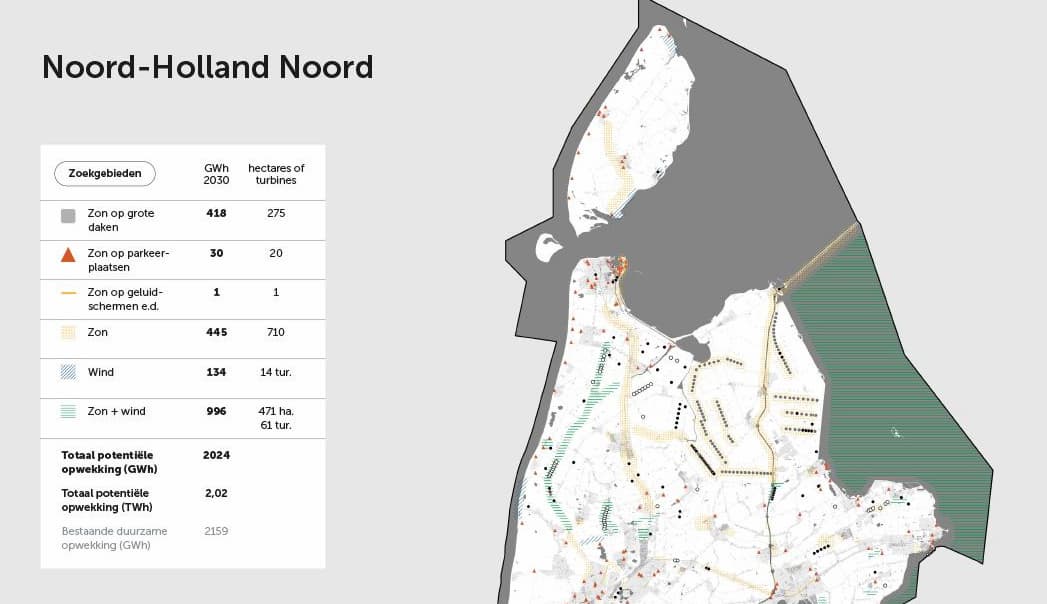 De opgave in Noord-Holland Noord is om in 2030 in totaal 3,6 TWh aan duurzame elektriciteit met zon en wind op land op te wekken. Op dit moment staat de teller op circa 2,0 TWh. Duidelijk is dat overheden, maatschappelijke organisaties, ondernemers en bewoners elkaar nodig hebben om in acht jaar tot bijna een verdubbeling van het aantal opgewekte TWh te komen. De wil is er, maar de regio heeft wel een winstwaarschuwing: deze nieuwe taken kunnen alleen goed en tijdig worden uitgevoerd als aan drie randvoorwaarden wordt voldaan. Het Rijk moet middelen ter beschikking stellen voor de nieuwe taken die voortkomen uit de RES. De invoering van de Omgevingswet moet niet opnieuw worden uitgesteld. En de energie-infrastructuur moet op orde zijn om projecten te kunnen aansluiten.