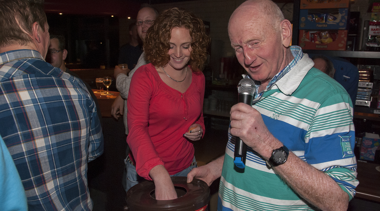 Wat wil je ook, werkelijk iedereen had deze avond prijs. Met dank aan de onvolprezen John Buik. The man who has the power to surprise. Ruim voor aanvangstijd kwam John binnen met een enorme lading knalrode boodschappentassen van het automerk KIA. En ook het Nissan schoonmaakpakket had hij weer mee. De pitprijs die, met dank aan de eierwekker, kon worden uitgereikt aan de dames Van Vegten. De met goud bekroonde snert van Jack de Ruijter, zelf niet aanwezig maar oma De Ruijter had het mee, ging naar Mireille en Jeroen. In de derde ronde verdienden Trees Dignum en Hannie Bruin een fles witte wijn uit de kantinevoorraad.