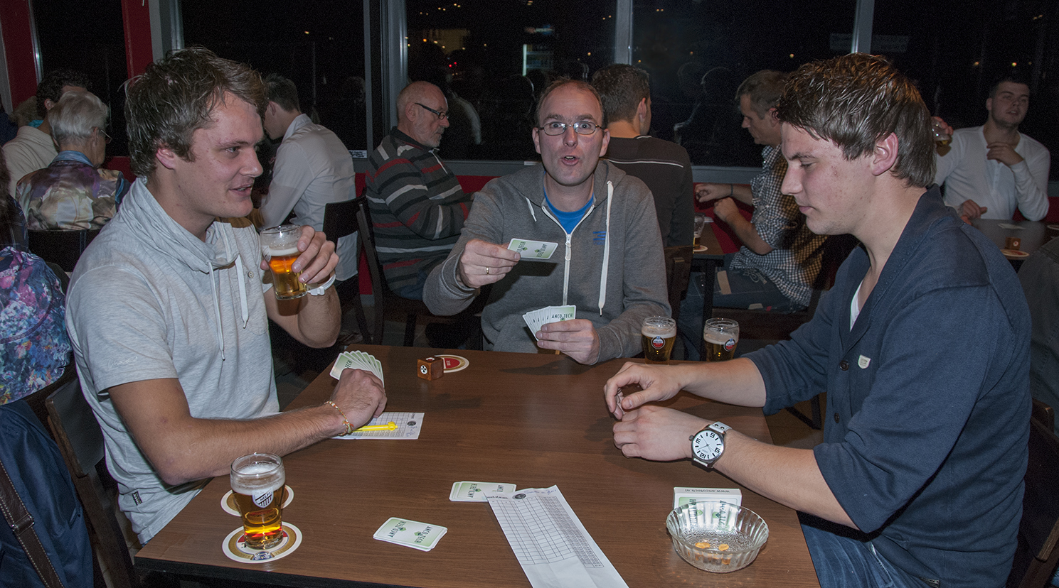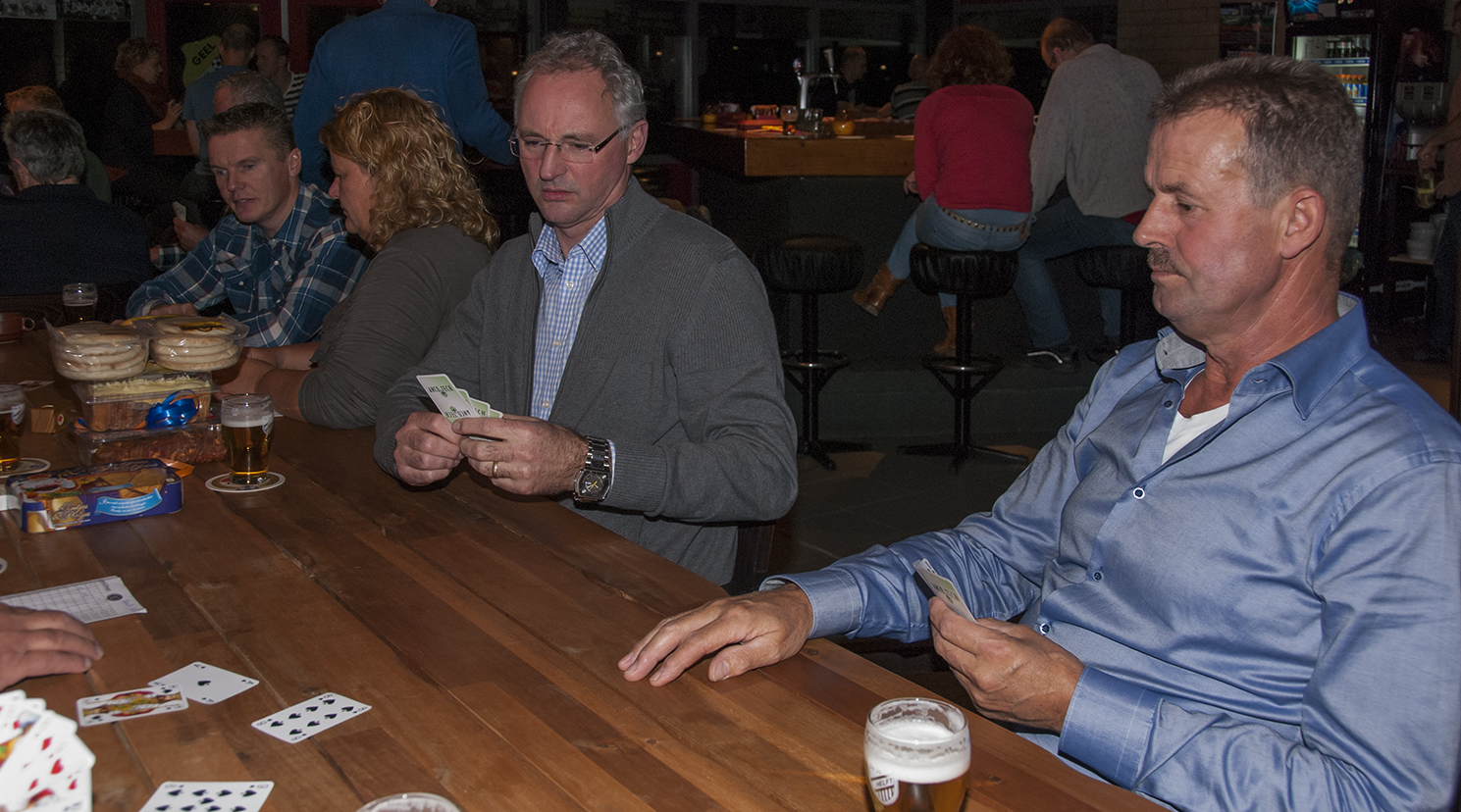 Het was wederom een drukte van belang in het Geel Zwart-paviljoen afgelopen maandag 18 november. Maar liefst 33 koppels meldden zich, helaas wel een oneven aantal, waardoor er per ronde een koppel aan de bar plaats moest nemen. Gelukkig gebeurde dit zonder gemor.