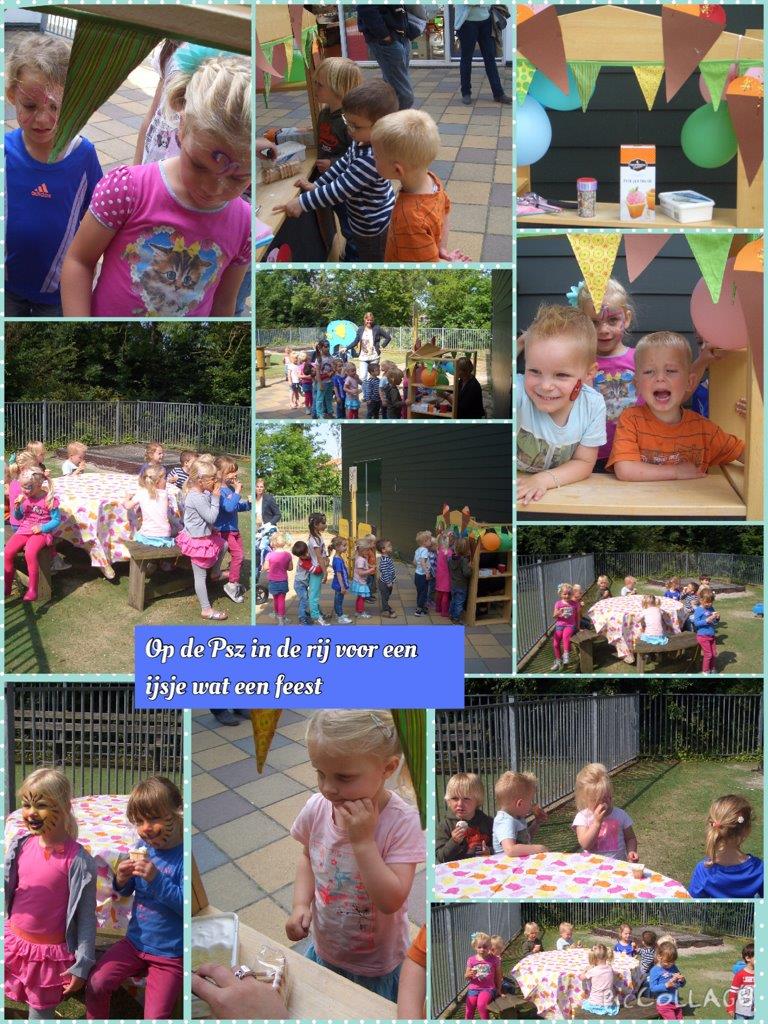 De kindjes van peuterspeelzaal De Zandbak zijn vorige week woensdag op schoolreisje geweest. De reis ging naar de speeltuin in de Pater de Witstraat. Het was prachtig weer en de peuters kregen daar drinken en een koekje. Ze werden zelfs nog geschminkt en uiteraard mochten ze spelen in de speeltuin. Na afloop kregen ze allemaal een ijsje in de speciaal gemaakte ijssalon van de peuterspeelzaal. Hieronder een aantal collage’s van de schoolreis.