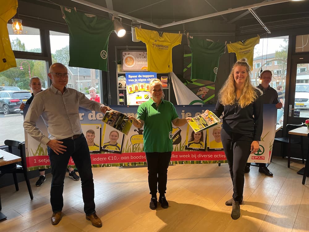 foto’s: HV Geel-Zwart. (Vlnr: Bas Veul – voorzitter SV Geel-Zwart ’30, Carla Vermeulen – Spar Nielsen ’t Zand, Noortje Slot – voorzitter Handbalvereniging Geel-Zwart.