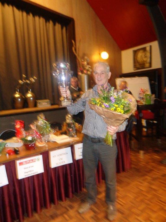 De nummers 1 t/m 4 kregen allen een mooie standaard en een prachtige bos bloemen aangeboden, de nummers 5 t/m 20 kregen allen een mooi potje met Tete tjes, De aanmoedigingsprijs werd gegeven aan Jelle de Visser, 19 jaar jong en deed voor de tweede keer mee.