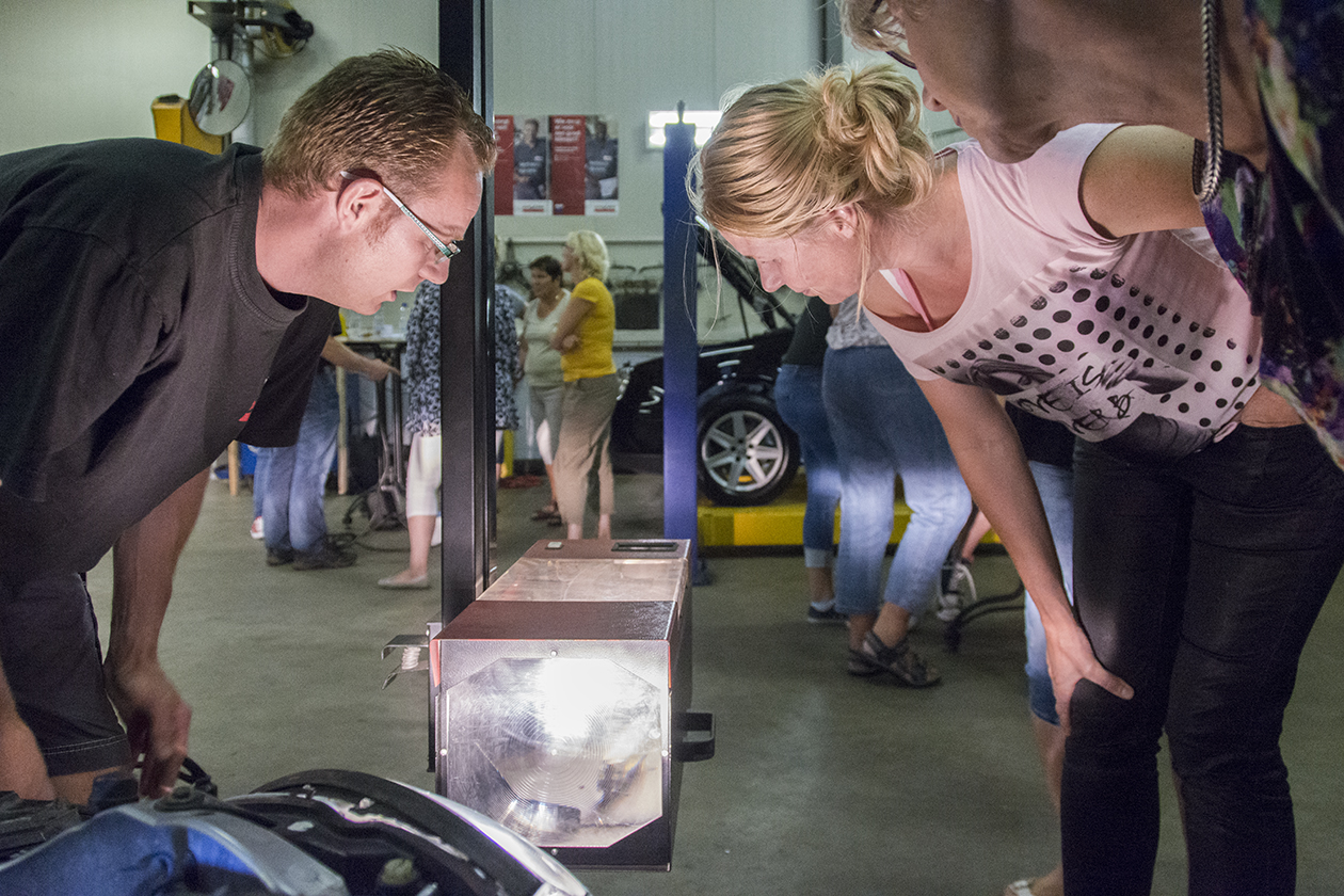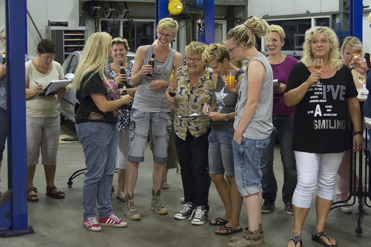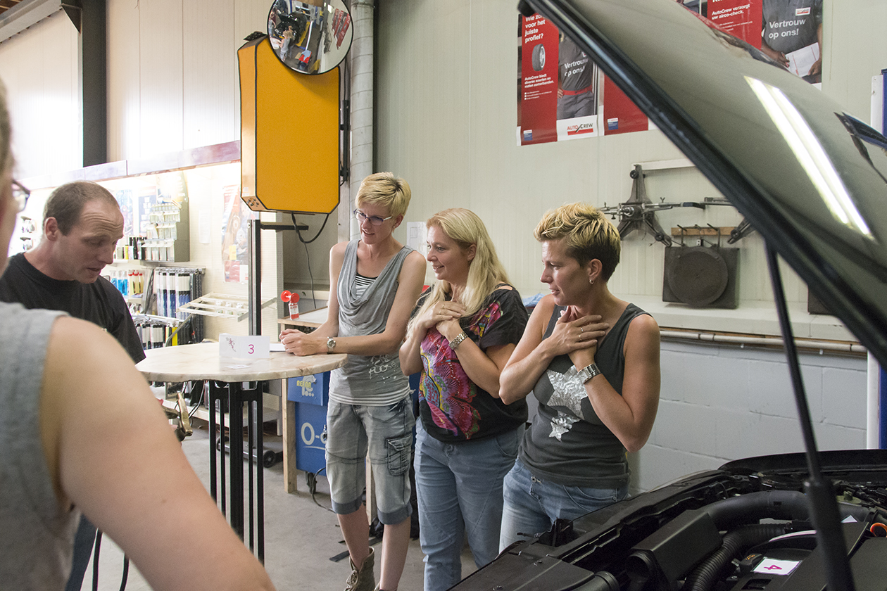 Een succesvolle en gezellige avond waar de deelnemende vrouwen onder andere leerden om een band en lampjes te verwisselen, oliepeil te controleren en om startkabels te gebruiken. Ook werden alle lampjes op het dashboard benoemd. De dames deden heel fanatiek mee. Uiteindelijk kreeg het team met het grootste aantal juiste antwoorden een autopoets pakket als prijs mee naar huis. Tussen alle opgedane kennis en arbeid door konden de vrouwen zich ook nog even laten verwennen door Fleur Hertogh van Bodytentions: Beauty & Nails. De avond werd afgesloten met een hapje en een drankje. Voor iedereen die mee had gedaan stond er ook nog een goodie bag klaar. Al met al een geslaagde avond met fanatieke dames die nu hun man of vriend kunnen overtreffen met hun kennis van de auto. Fotograaf André Sonderman was ook aanwezig en maakte onderstaande fotoreportage.