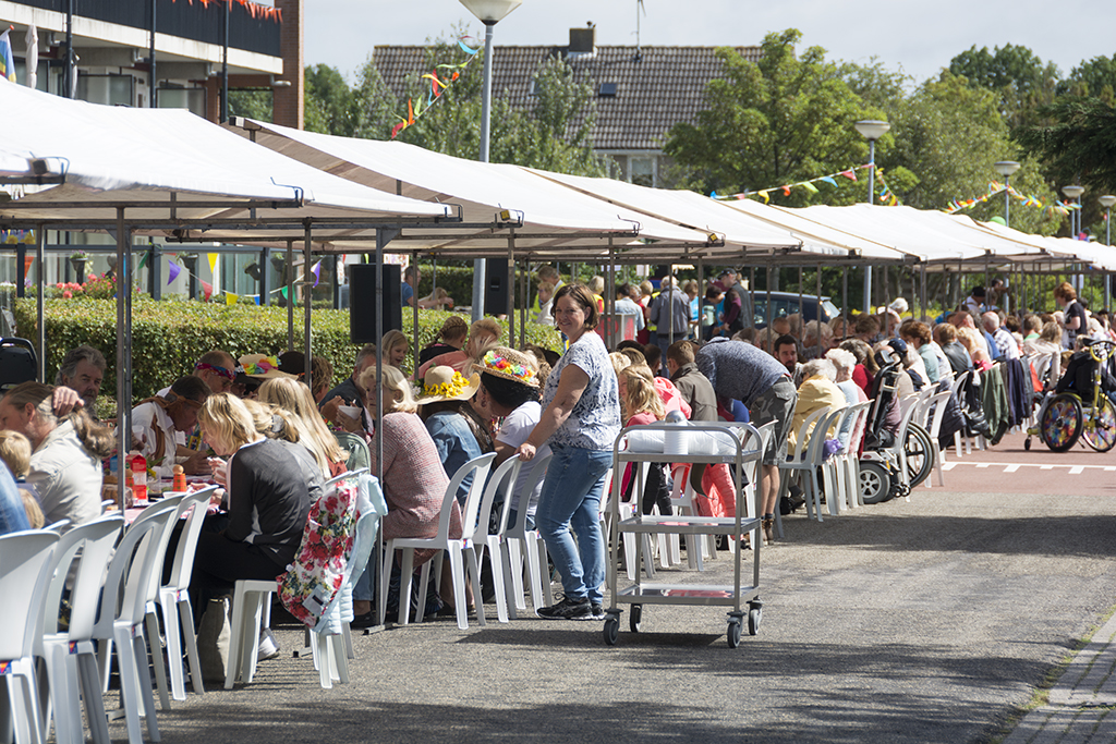 De maaltijd werd mogelijk gemaakt door medewerking van Bakkerij Slijkerman, Spar Nielsen en Slagerij  Andringa. Voor een eventuele sanitaire stop was de toiletwagen van harddraverijvereniging De Volharding beschikbaar gesteld. En de vrolijke muziek tijdens het eten werd verzorgd door Jo van de VRO. En let op, ook niet vergeten: de medewerking van bewoners in de Wilhelminastraat die stroom en water beschikbaar stelde.