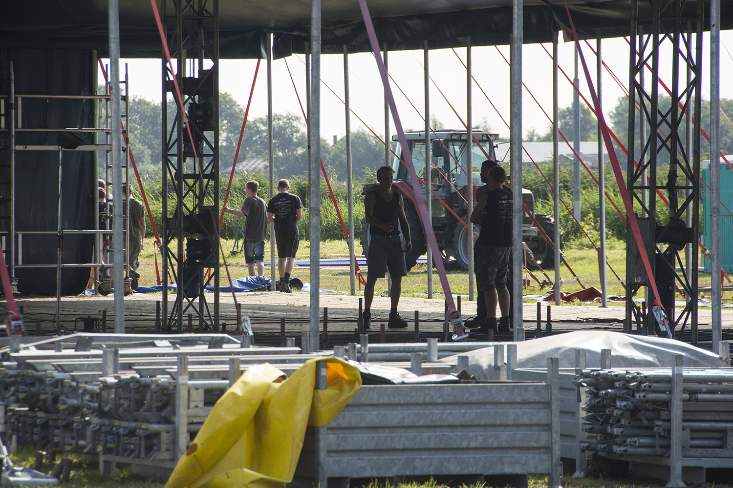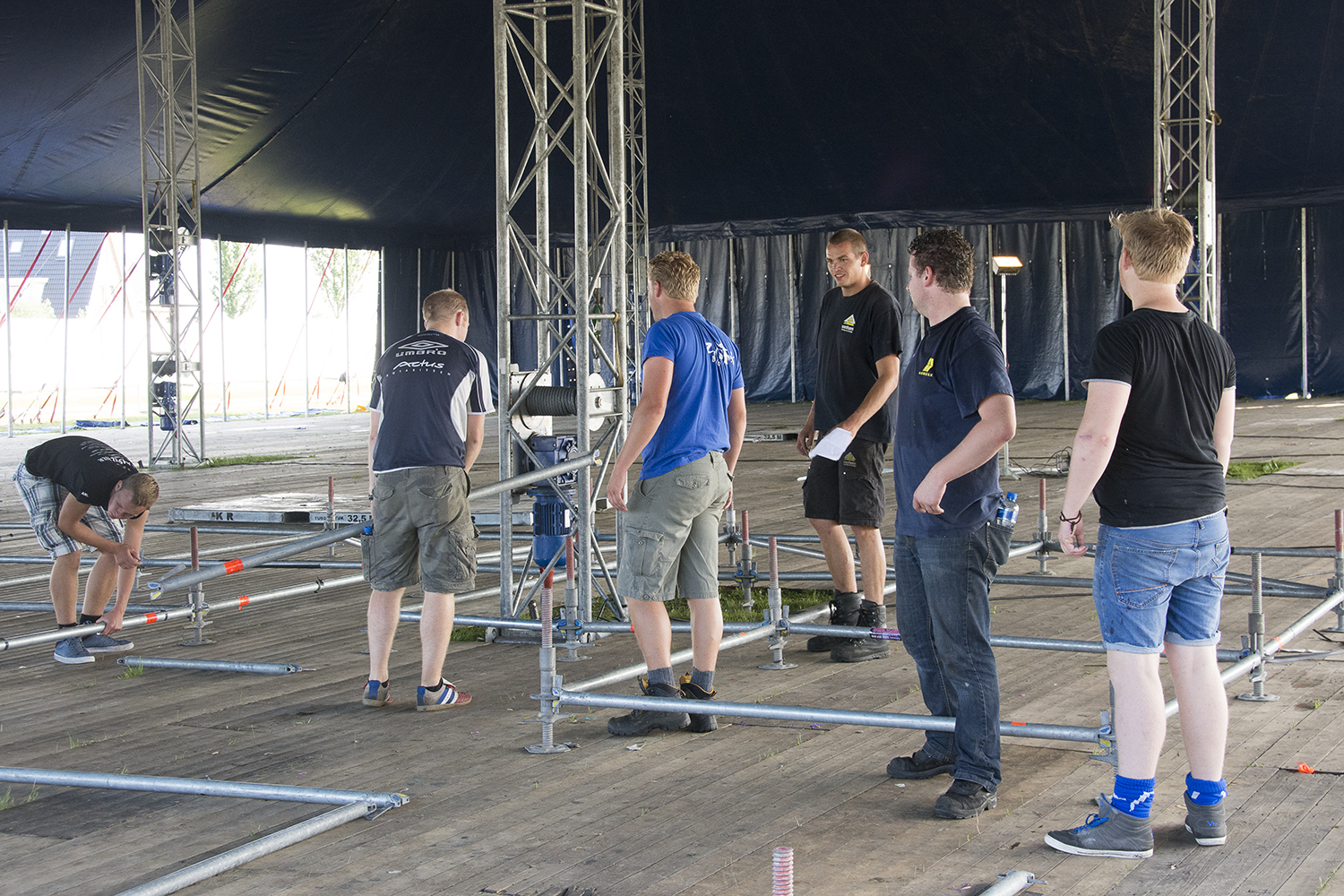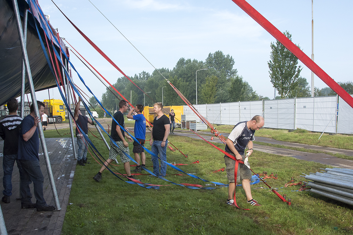 Nog maar één nachtje slapen en dan begint het festival Zandstock. De opbouwploeg is de afgelopen dagen hard aan het werk gegaan om onder andere de tenten neer te zetten, de verschillende barren op hun plaats te zetten en te zorgen dat het podium staat.