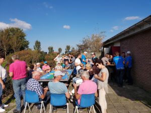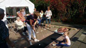Afgelopen zaterdag was er weer een evenement en dat was de ludieke straatgolf door het gehele dorp. 11 Straten, 13 teams (40 deelnemers) en fantastisch weer (want ja de nazomer was even hier) vormden het ideale recept voor een fantastische middag. Er werd gespeeld met golfsticks en golfballen (gesponsord door Jongejan Accountants en Partners), maar ook met frisbees, tennisballen en handballen. De teams vermaakten zich uitstekend en ook de baanmarshalls genoten van het enthousiasme en het mooie weer. De uiteindelijke winnaars waren Keinsmerweg (Dick van Diepen, Adri de Wit en Willem Jeninga). De middag werd gezellig afgesloten buiten bij de WBO.