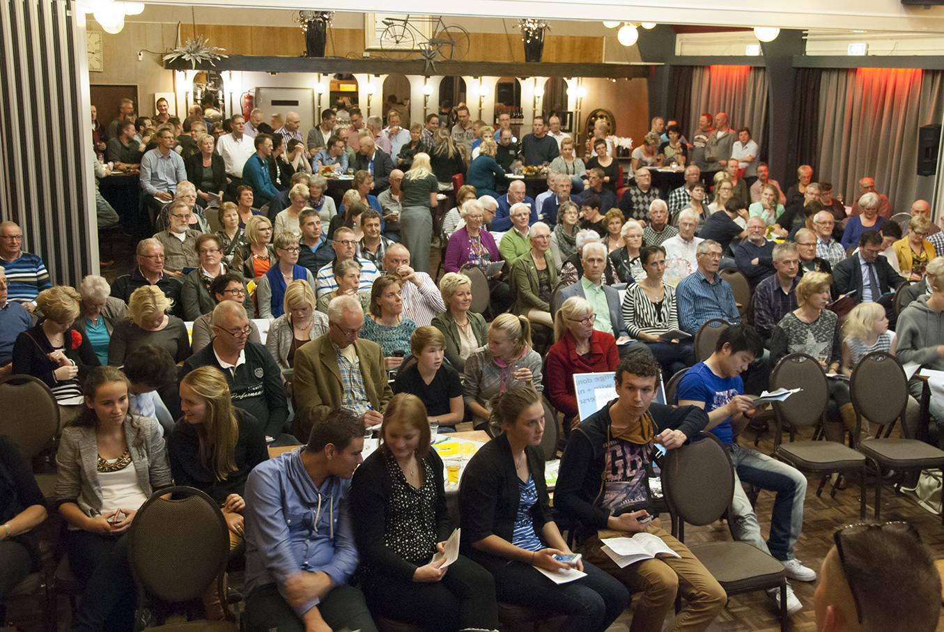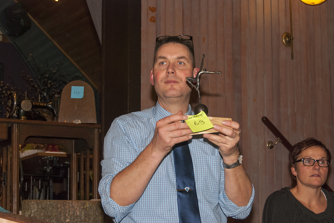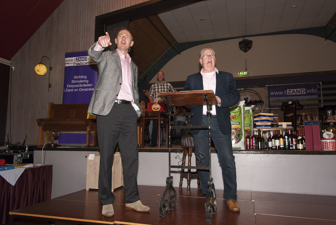 In de grote zaal van De Jonge Prins werden de 250 kavels aan de man gebracht door veilingmeesters Adri de Wit en Siem Broersen. Met een overweldigend enthousiasme stonden de mannen bijna zes uur achtereen de diensten en materialen te veilen. Met een fantastische opbrengst als resultaat. Het publiek was massaal op de veiling afgekomen en boden grif op de kavels. De veilingcommissie kan tevreden terug kijken op deze editie van de tweejaarlijkse veiling. Met veel medewerking van vrijwilligers en een ieder die een kavel ter beschikking had gesteld heeft een klein dorp weer laten zien waar het groot in is.