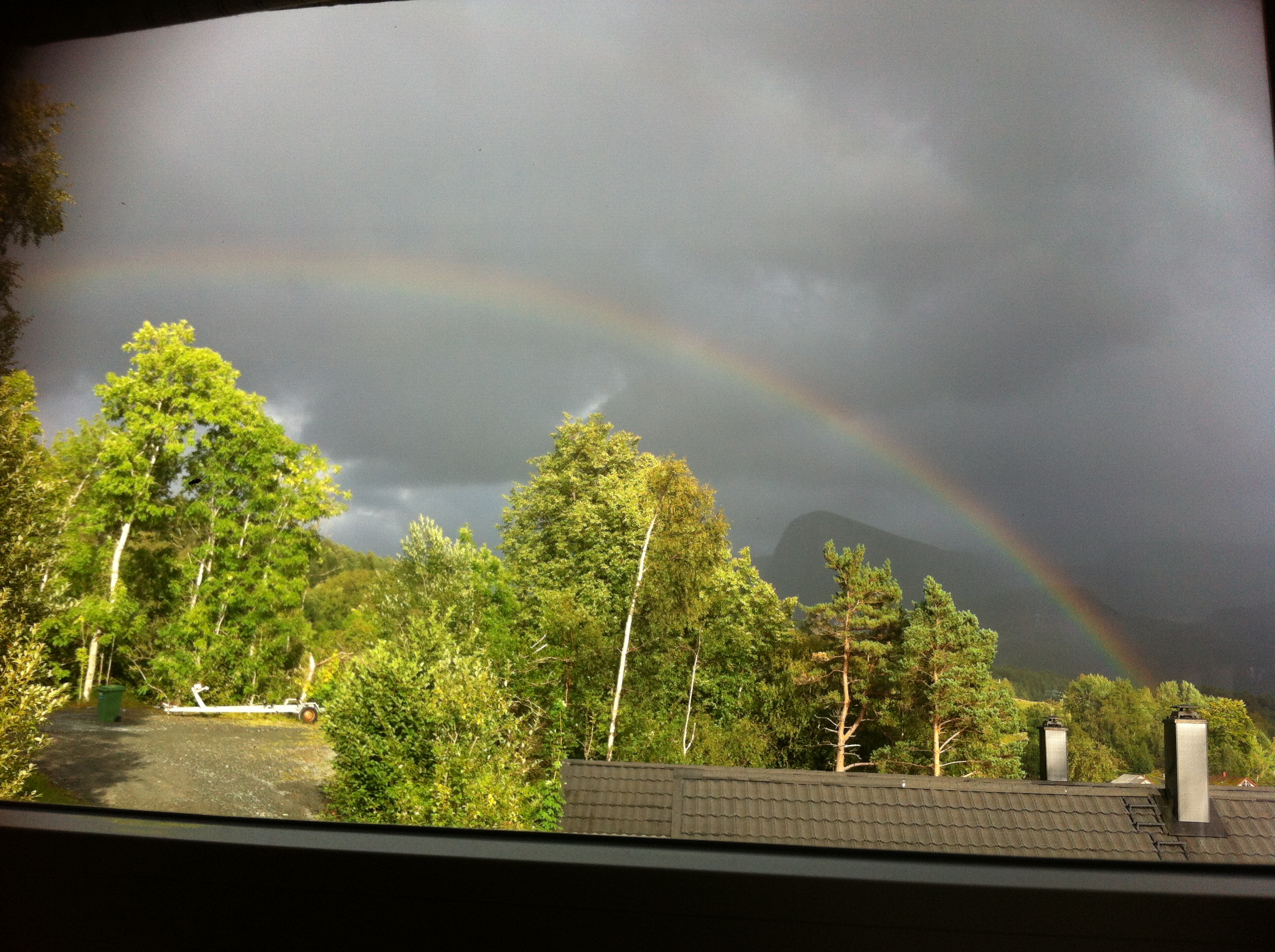 Het plan is gaaf, toch ben ik down. In de supermarkt klamp ik het liefst iedere vakkenvuller, klant en kassière aan om te vertellen “it’s mij sisters birthday today. She is in Holland and we miss her”. Maar ik houd het voor mezelf en voel me alleen. Voor de zekerheid koop ik , eenmalig, want god-oh-god zo duur maar nu in de aanbieding, 2 grote repen chocolade. Ik heb besloten een emotie-eter te worden. In de auto terug naar huis barst ik in huilen uit. Met grote dramatische uithalen laat ik mijn tranen over mijn wangen stromen. Ik weet niet of dit door het verdriet van mijn dochter komt of door mijn eigen gemis. Ja, ik had dolgraag een warme hand, 3 zachte kussen op haar zorgvuldig opgemaakte wangen gegeven, stiekum haar luchtje opgesnoven. In plaats van zo’n kille virtuele hug. Ik had graag aan willen hikken tegen die veels te grote punt taart die ze altijd afsnijd. Me willen storten op de met overheerlijke hapjes rijkelijk gevulde tafel. Proberen een gesprek aan te gaan met de andere gasten terwijl de kinderen op de achtergrond teveel lawaai maken. Proosten met mijn moeder en de andere familie. En tot grote hilariteit van mijn eega in discussie met mijn vader gaan waarin we elkaar nooit gelijk geven omdat we weten dat we allebei toch wel gelijk hebben. De zon schijnt een beetje en door mijn tranen zie ik een regenboog.