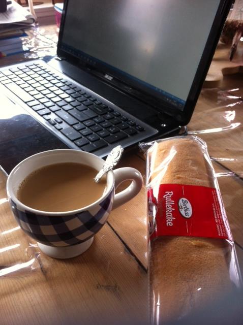 Ik koop dé cakerol waar oudste dochter met regelmaat verlekkerd bij had staan kijken. En spreek af dat zus in Nederland drinken , cake en chips aanbied via skype, en dat ik dit live in Noorwegen serveer. Zo zijn we er toch een beetje bij.