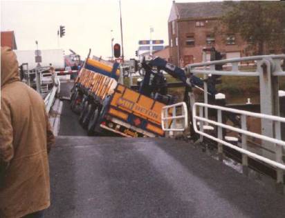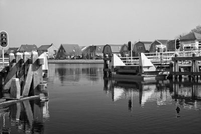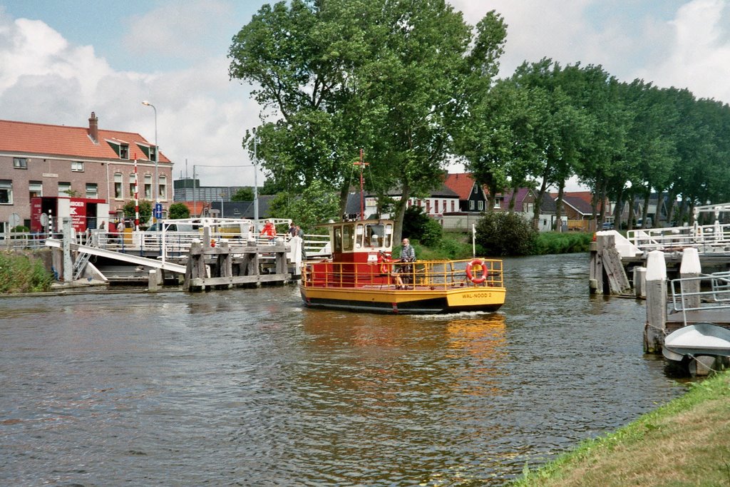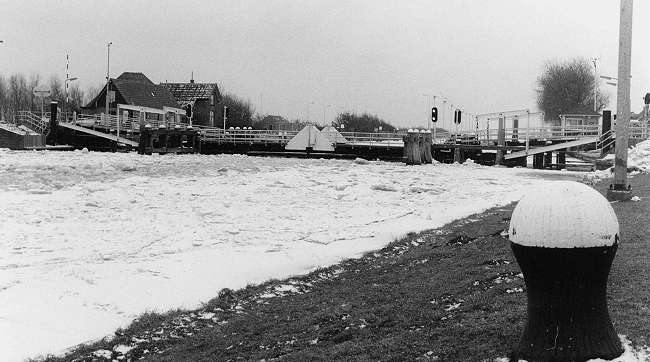 3-Vlotbrug-2011-IMG_3730-zwOp de fiets naar school moest ik altijd over de vlotbrug. Toentertijd nog nadat het stoplicht op groen sprong. Nu manoeuvreer je je tussen brugleuning en tegemoetkomende autospiegels of je wacht keurig tot je aan de beurt bent of wordt gelaten. Als er een boot aan kwam zorgde de brugwachter ervoor dat de bomen werden gesloten en de brug werd geopend. Had het gevroren en lag het kanaal vol met ijsschotsen, dan stond brugwachter van Loon op de bewegende delen van de brug en duwde met een grote stok de ijsschotsen tussen de brug uit zodat deze zonder problemen kon sluiten. Een tafereel waar wij als kinderen gefascineerd naar stonden te kijken. De vlotbrug, een belangrijk iets van het dorp. Het verbind , volgens de borden ’t Zand West met ’t Zand…………(punt!). Is deze verbinding niet mogelijk door mankementen aan de brug dan is er voor de fietsers het ‘heen en weertje’. Nog zoiets wat je als kind geweldig spannend vond. Met het pondje naar de overkant van het kanaal gebracht worden. Nu we ouder zijn een noodzakelijk kwaad, blij dat de mogelijkheid er is maar zuur als je een feestje aan de andere kant hebt…….verplicht op tijd naar huis of omrijden. Wonende in ’t Zand West (dus de kant waar níét de kerk staat) hebben wij jaren terug serieus acties ondernomen om een waterfiets of iets dergelijks op de kop te tikken om op deze manier s’nachts de afstand in te korten en het kanaal te trotseren.