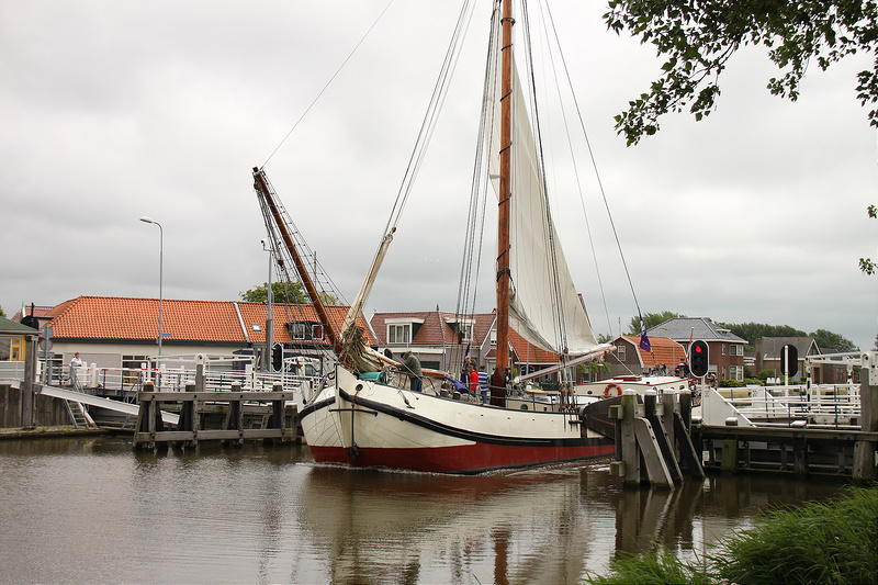 En nu, nu is het bladstil en ligt hij daar rustig drijvend zijn diensten te bewijzen. Bijkomen van de afgelopen periode. Afwachtend van wat er nu weer komen gaat. Het vakantieseizoen is nog niet voorbij, hij kijkt er vast niet naar uit om al die zwaarbeladen auto’s en caravans over zich heen te moet laten gaan. Maar de tijd vliegt en over 2 1/2 week zullen de schoolkinderen weer over de brug sjeezen. Blij dat hij er is. Onze mooie vlotbrug!