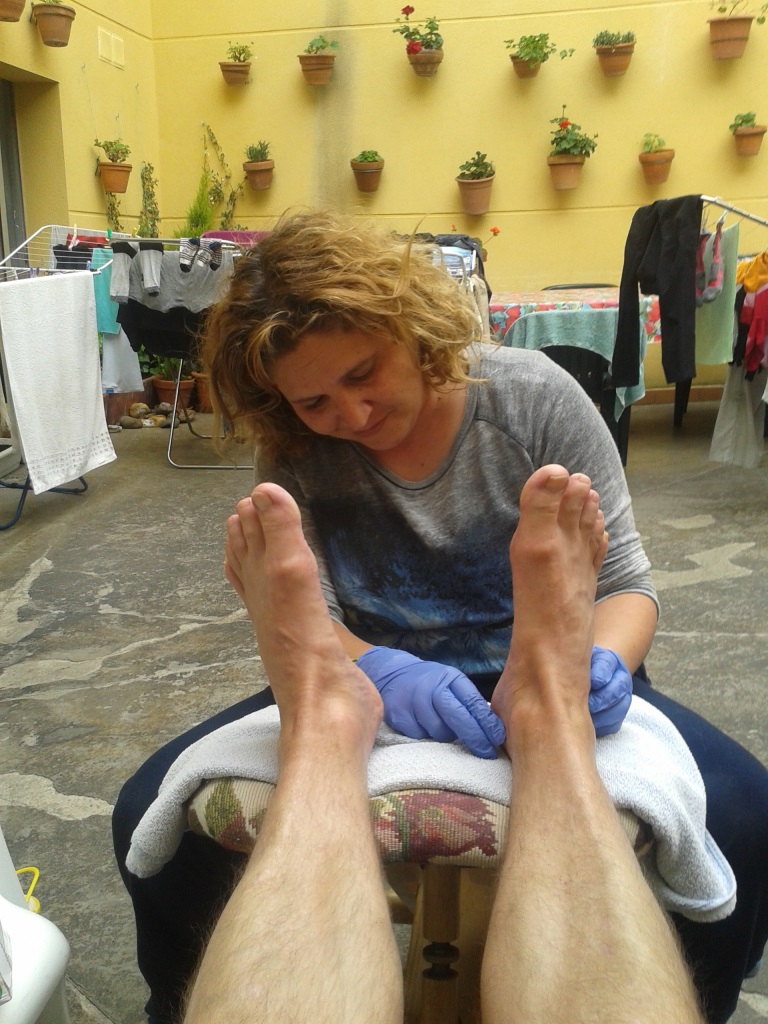 Wat maakt de Camino verder zo speciaal? Zoals gezegd beland je na verloop van tijd in een ritme van slapen, lopen, eten, slapen, lopen, eten enz. Dit zijn de enige dingen waar je je druk over moet maken en de andere dingen waar je je thuis mee bezig bent worden bijzaken die er op de Camino niet toe doen. Waar je in je vertrouwde omgeving denkt dat je zelf het roer in handen hebt neemt de Camino dat van je over. Hier gelden andere normen en regels die je alleen respecteert wanneer je ze ondervonden hebt. Er tegenin gaat leert je dat je de tol betaalt en wordt terug geworpen wanneer je niet naar je lichaam luistert. Zo ontmoetten we een wandelaar die dacht in drie dagen 150 km te kunnen lopen en daarna vrolijk verder te kunnen. De volgende dag moest hij worden ondersteund en kwam niet verder dan 15 km. Zo leert iedereen de les van de Camino.