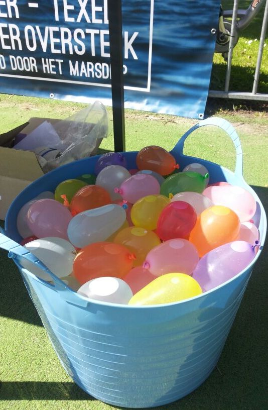 Kinderen van de basisscholen uit ’t Zand hebben vorige week met hun spierballen liefst 150 euro verdiend. Hiermee sponsorden zij de actie ‘Ik zwem voor Femm’. Voor 50 cent was een ballon gevuld met water  te koop. Deze mochten ze gooien op Debby Burger, de zwemster die op 9 augustus de oversteek van Den Helder naar Texel gaat maken.