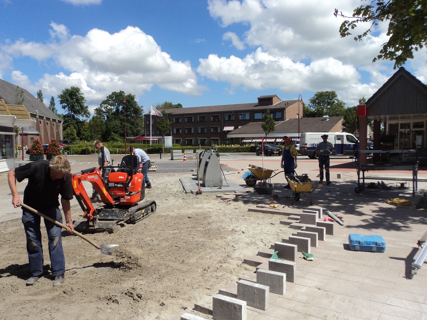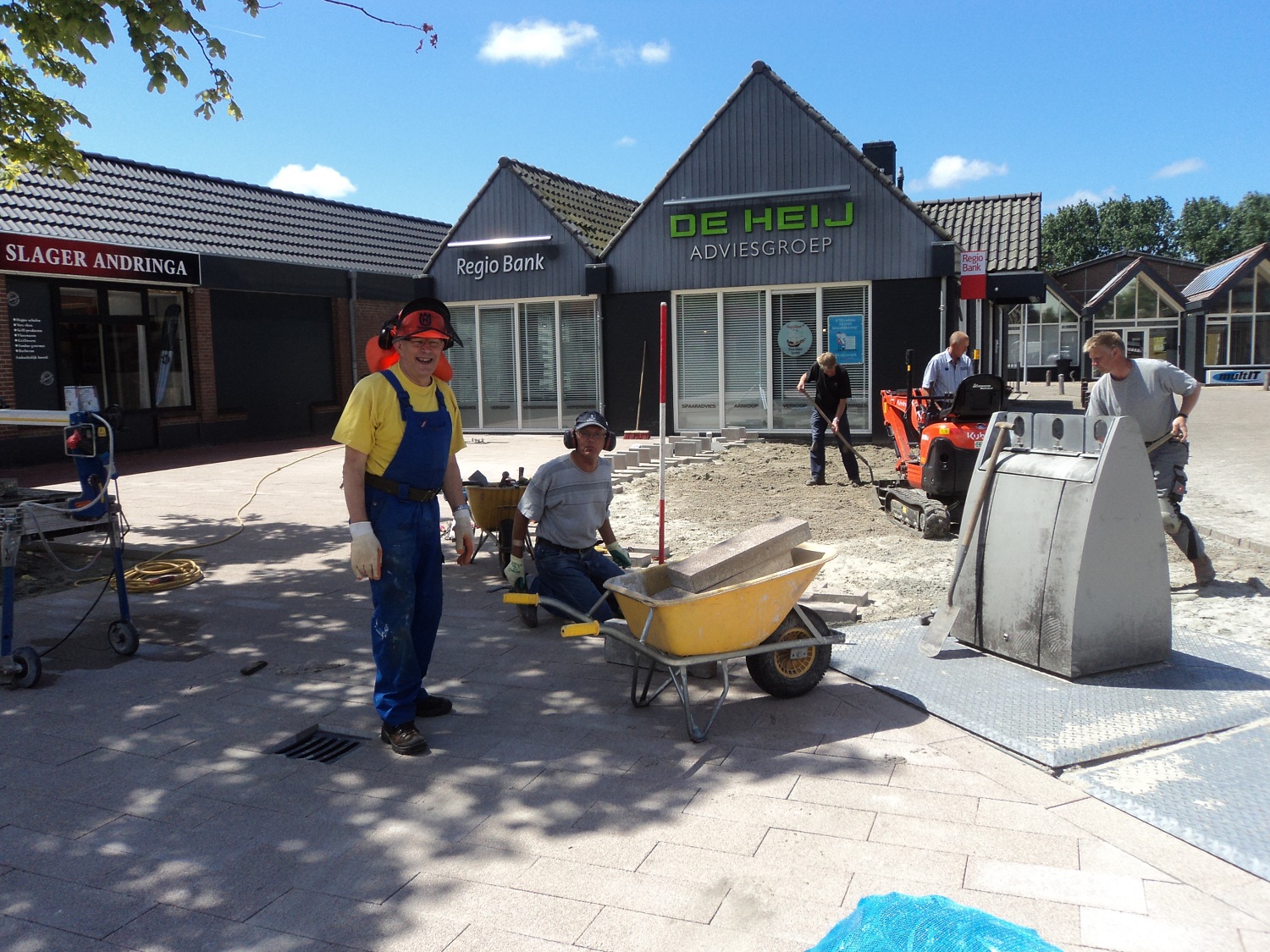 De werkzaamheden zijn uitgevoerd onder de fanatieke leiding van onze Ondernemer van het Jaar, Jan Schilder Multiservice. Prachtig zoals we iedere keer een beroep op hem en zijn vrouw kunnen doen en hoe hij meedenkt over het ontwerp en uitvoering en hoe flexibel hij zich opstelt ten opzicht van de inzet van vrijwilligers. En we hebben gemerkt dat zoonlief Ab Schilder ook een goede vrijwilliger gaat worden, want die heeft ook af en toe zijn steentje bijgedragen.”