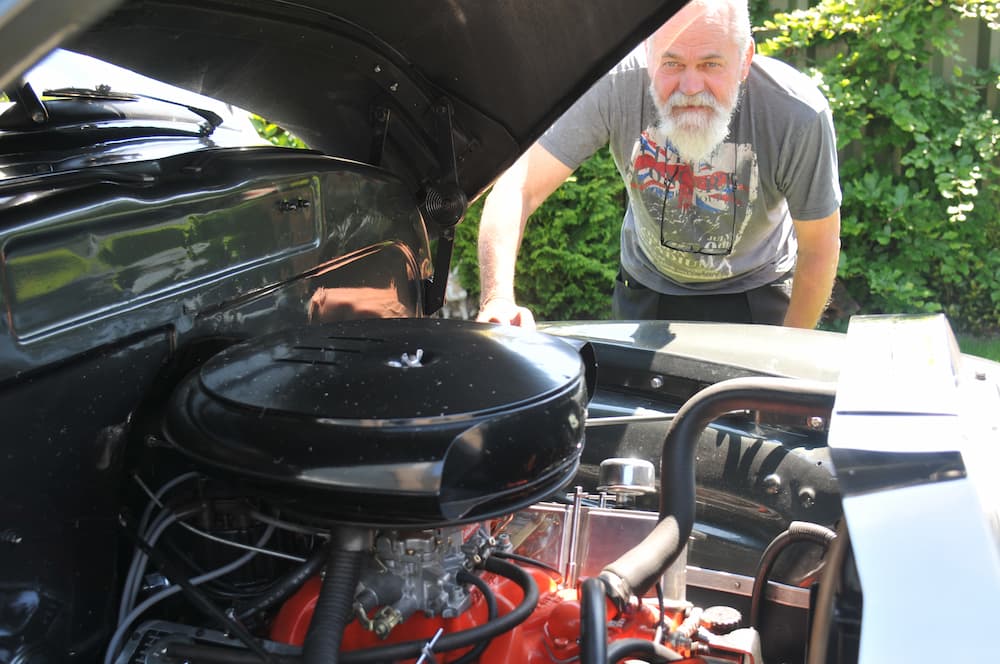 Gekocht in heel andere staat, maar met veel hulp van zoon Jim in liefst 5 jaar tijd, geheel gerestaureerd en omgebouwd tot Hotrod. Zie de foto met de auto in originele staat.