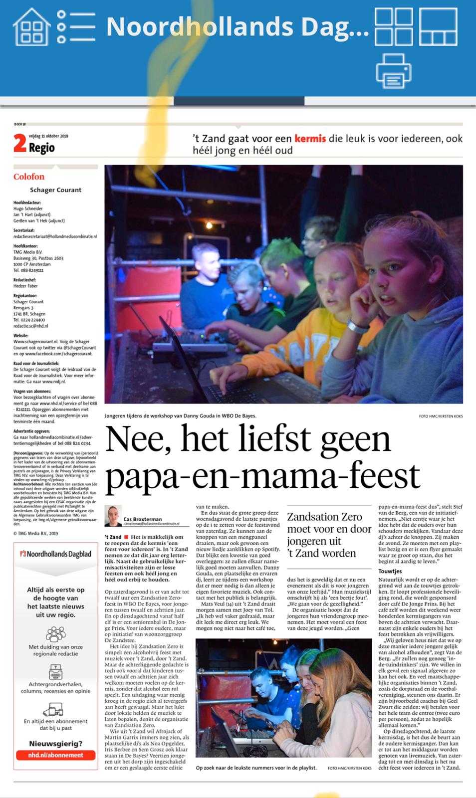 Zandsation Zero 2019 in het NHD, klik op het artikel voor een grotere versie.