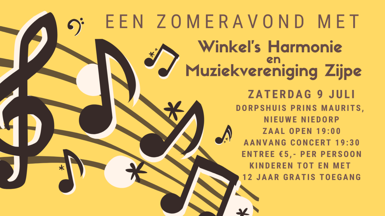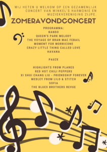 Het is bijna zo ver! Op zaterdag 9 juli geeft Muziekvereniging Zijpe samen met Winkel’s Harmonie een zomeravondconcert.